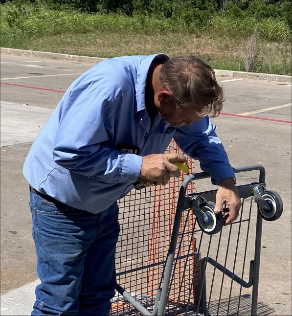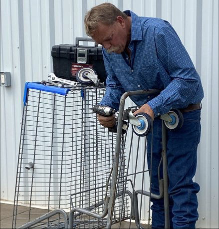 Debris removal of foreign materials from wheels, swivels and bearings; replacement or repair of faulty or broken parts in the basket, including safety seats/belts